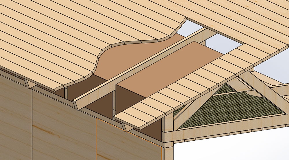 Viistoon, aluskatteen suuntaisesti asennettu tuulenohjain estää myös tehokkaasti tuiskulumen pääsyä eristeisiin ja varmistaa ettei yläpohjan tuuletus heikkene lämmöneristeitä lisättäessä.